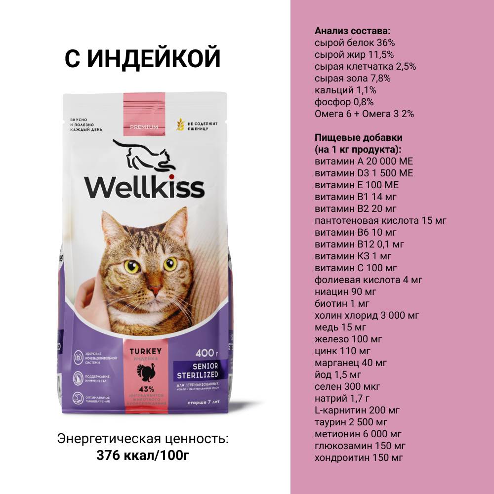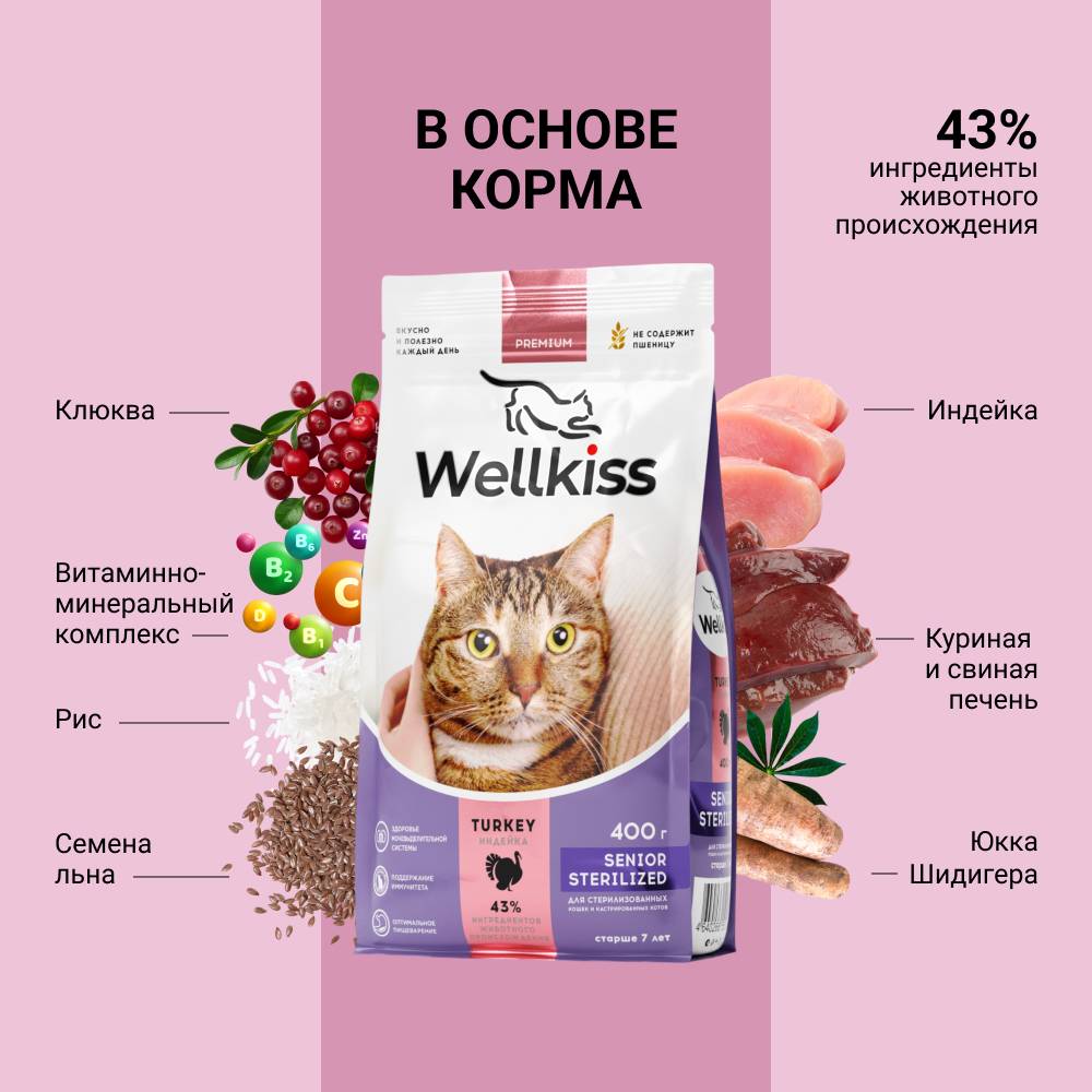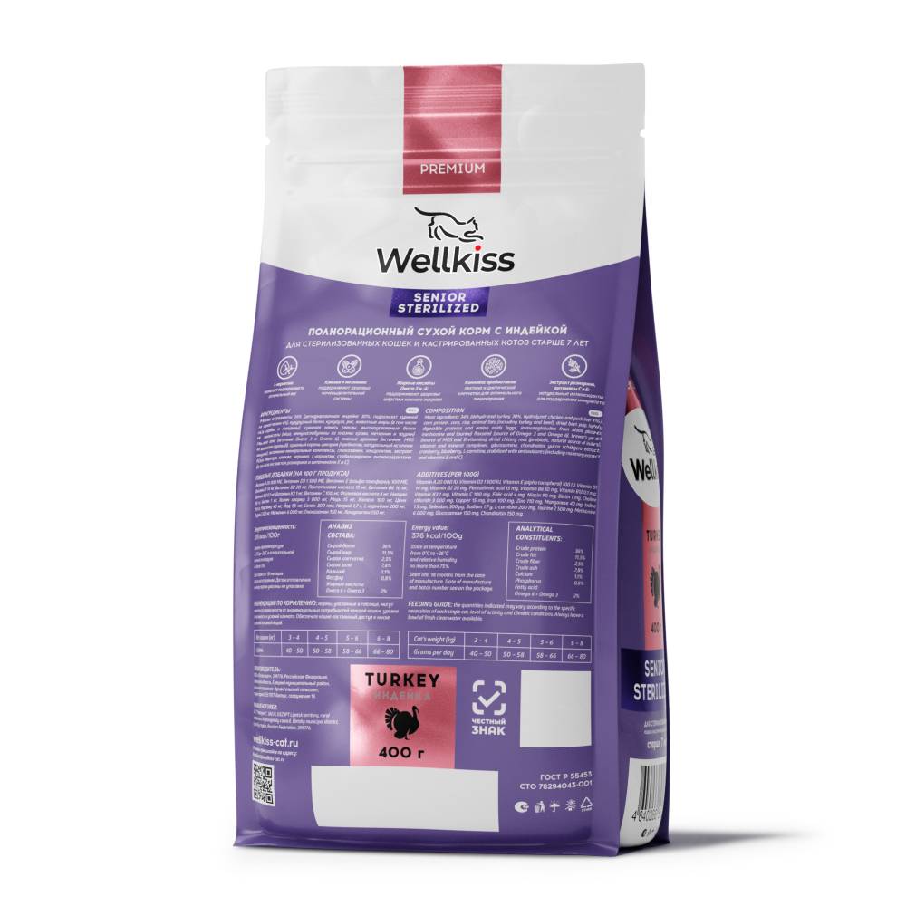 Wellkiss Senior Sterilized Сухой корм для стерилизованных кошек старше 7 лет, с индейкой, 400 гр.