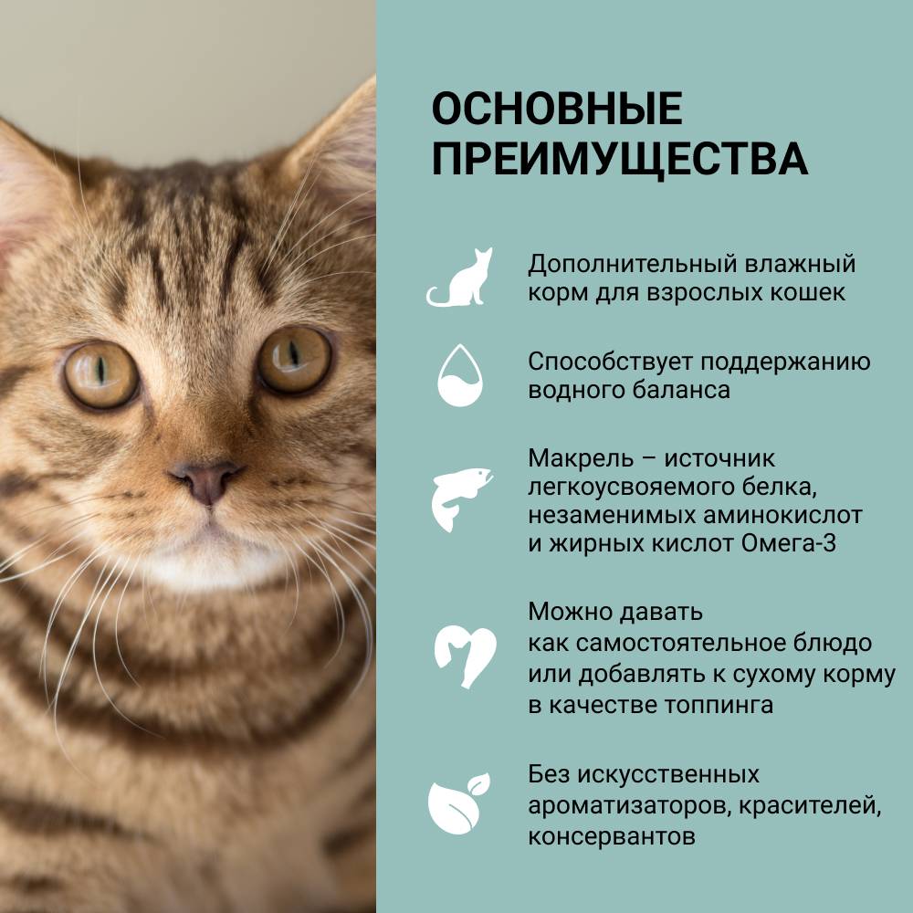 - Макрель является источником легкоусвояемого белка, незаменимых аминокислот и жирных кислот Омега-3, которые поддерживают здоровье кожи, шерсти, сердечно-сосудистой системы и иммунитета. Также макрель содержит важные витамины (А, B12, D) и минералы.