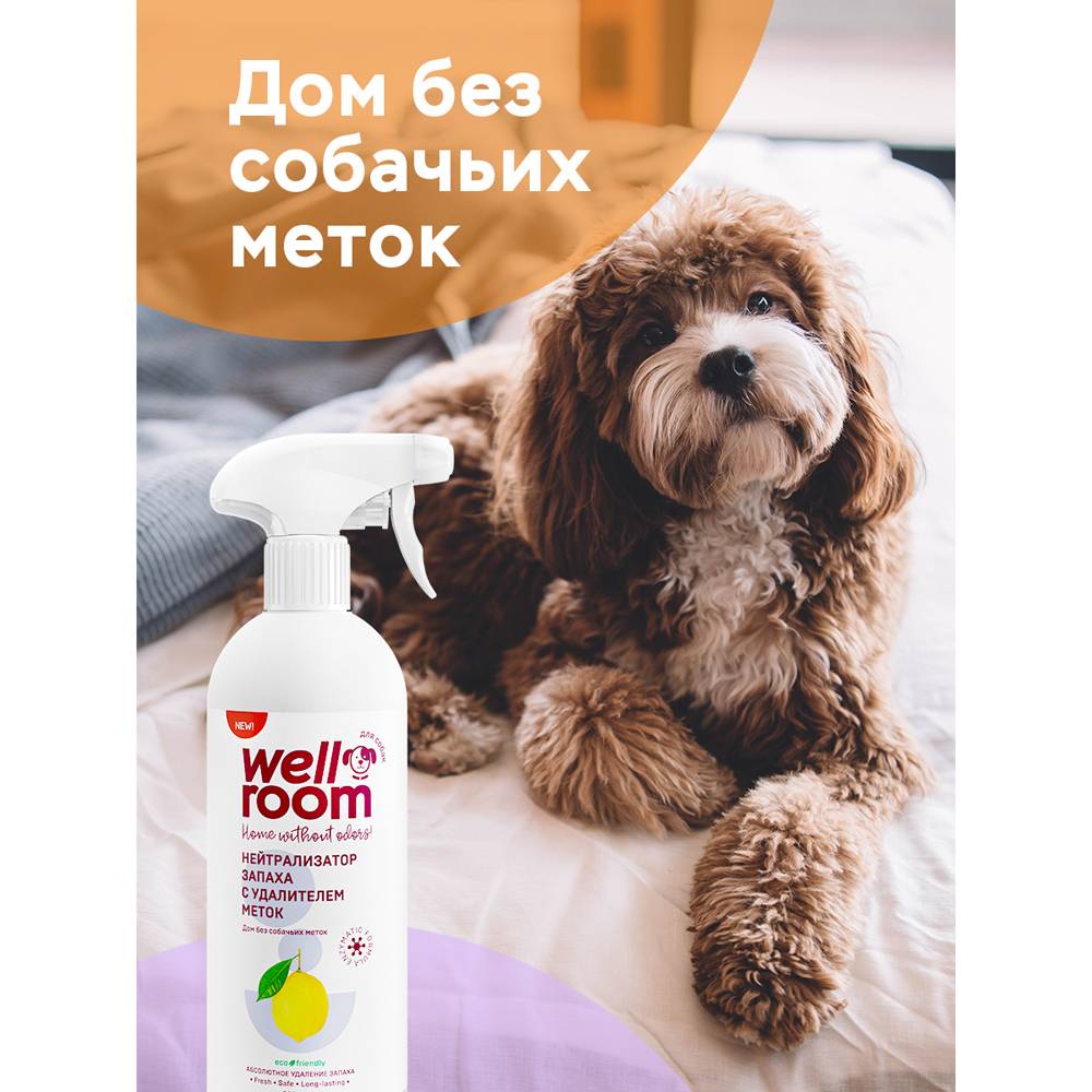 - Нейтрализатор запаха с удалителем меток Wellroom поможет сохранить чистоту и свежесть дома хозяевам собак и щенят.