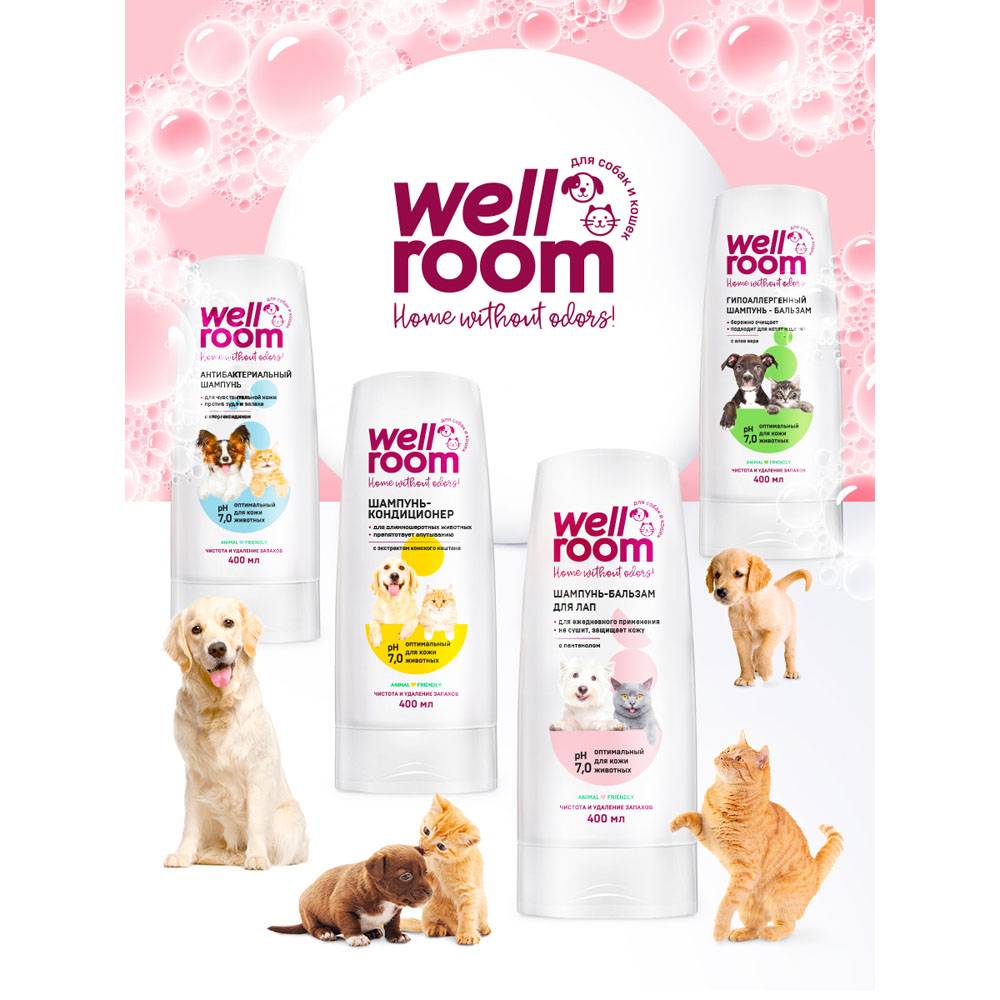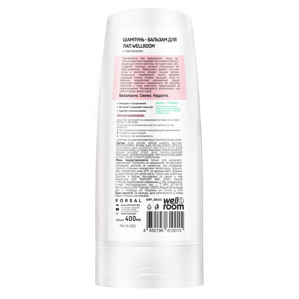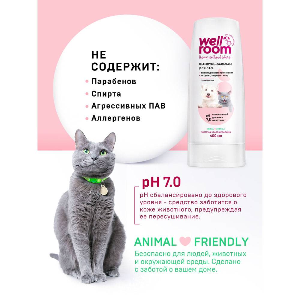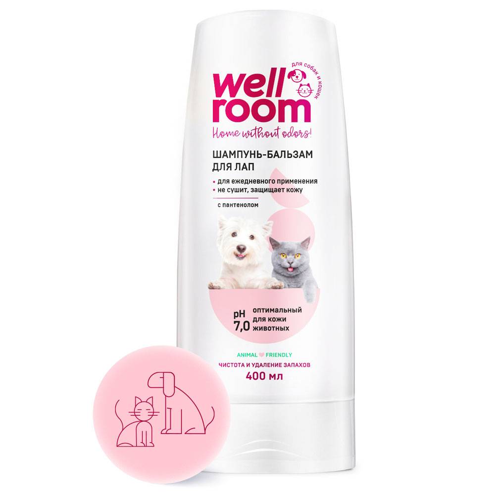 Шампунь-бальзам для лап Wellroom применяется для ежедневного ухода за кожно-шерстным покровом лап и живота собак и кошек до и после прогулки.