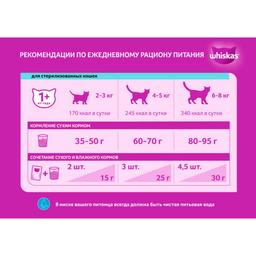 Whiskas создан специально, учитывая особые потребности Вашей любимицы. Хрустящие подушечки с нежным паштетом внутри обязательно придутся по вкусу Вашей кошке. Кроме того, Whiskas содержит все необходимое, чтобы еда Вашей стерилизованной любимицы была не только вкусной, но и полезной.