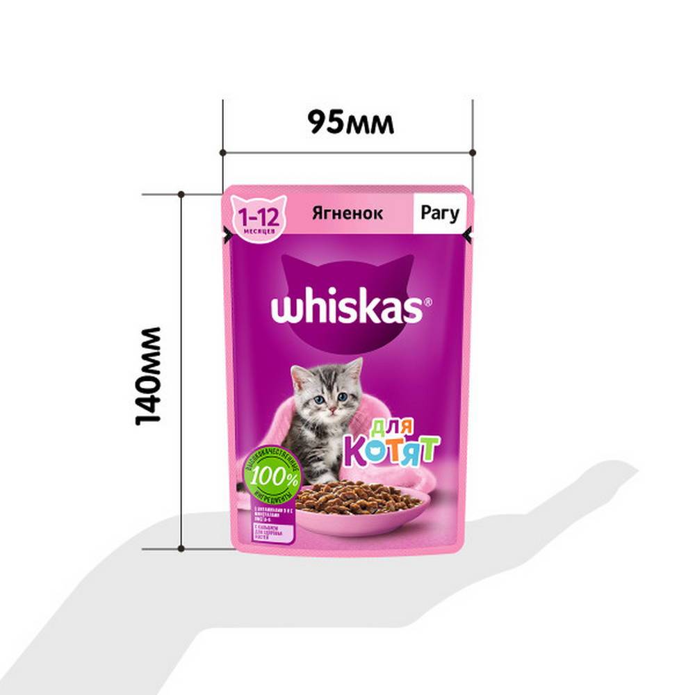 Рацион Whiskas для котят "Рагу с ягненком" — это сбалансированный рацион для здорового роста вашего малыша. Котенок с удовольствием попробует маленькие нежные кусочки с ягненком в ароматном соусе. Все для замурррчательной жизни!