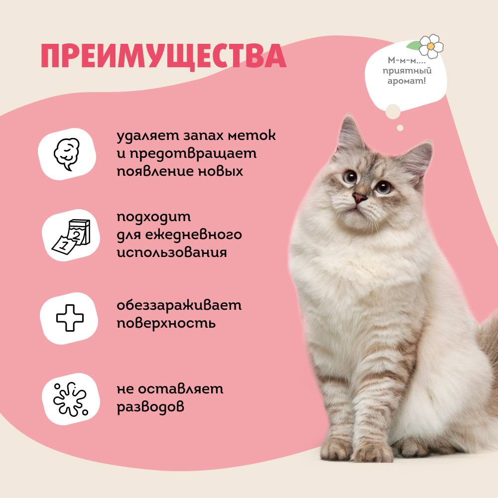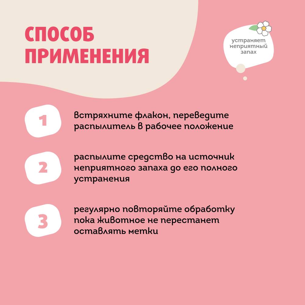 - Регулярно повторяйте обработку, пока животное не перестанет оставлять метки.