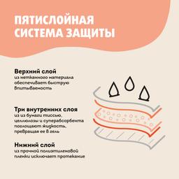 • Три внутренних слоя из бумаги тиссью и натуральной целлюлозы с гранулами суперабсорбента поглощают жидкость, превращая ее в гель, и надежно удерживают внутри.