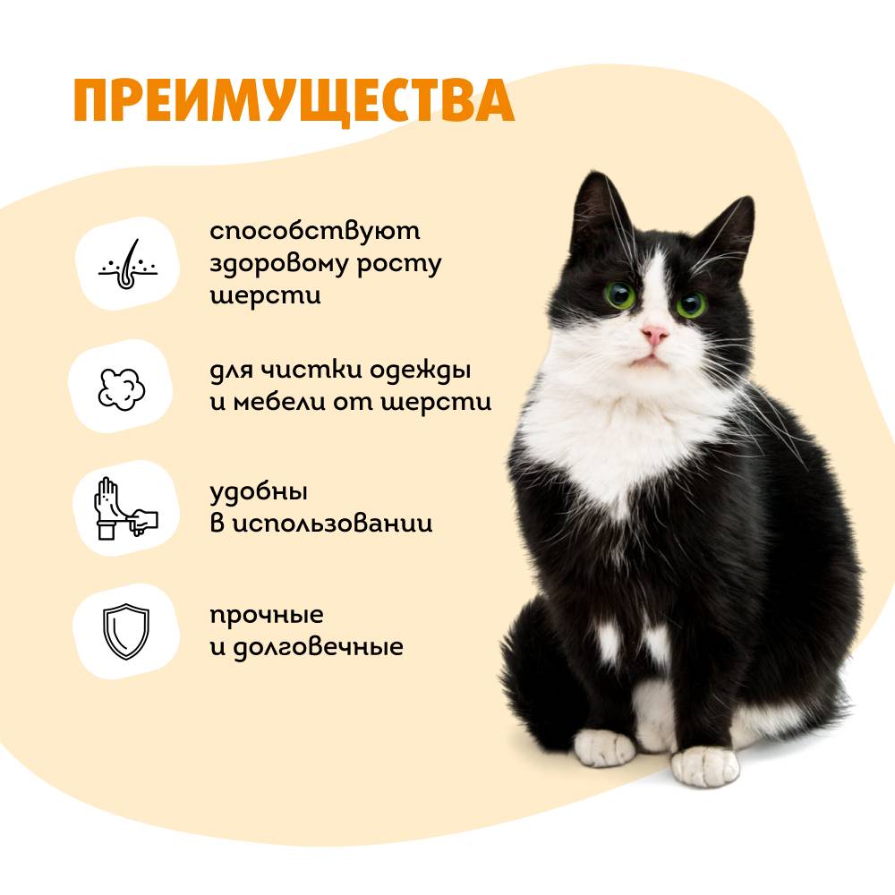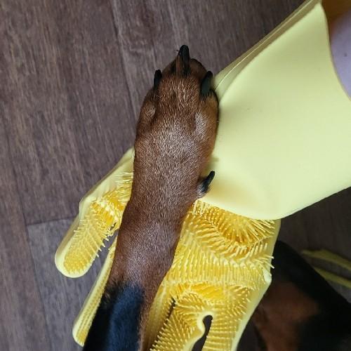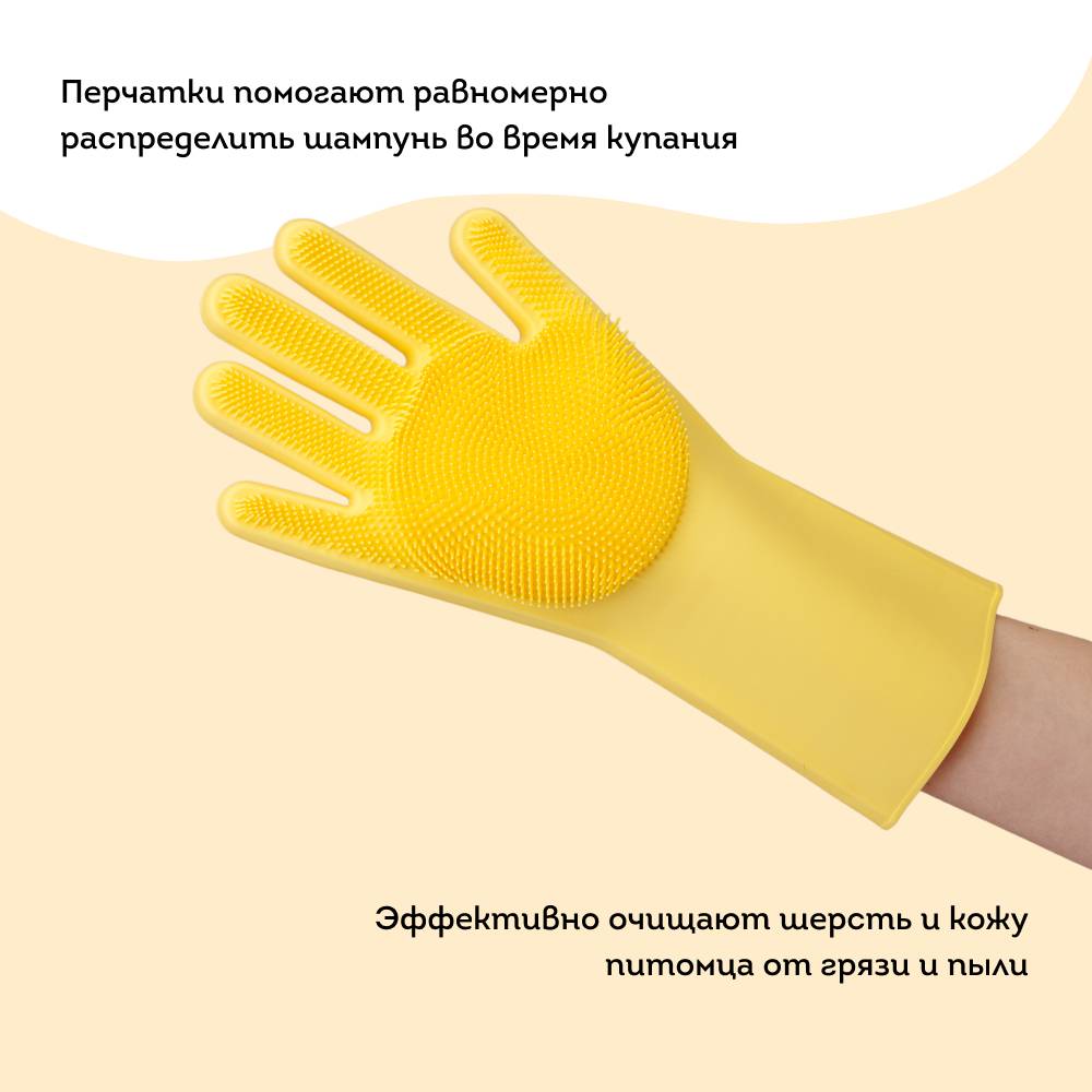 - Помогают равномерно распределить шампунь во время купания и эффективно очищают шерсть и кожу питомца от грязи и пыли.