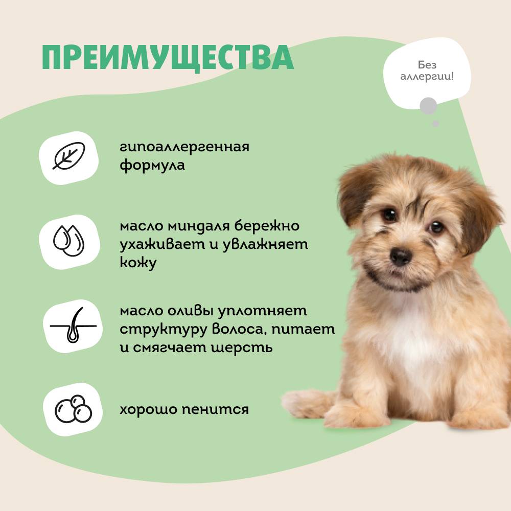 - Гипоаллергенная формула создана для заботы о нежной шерсти щенков всех пород.