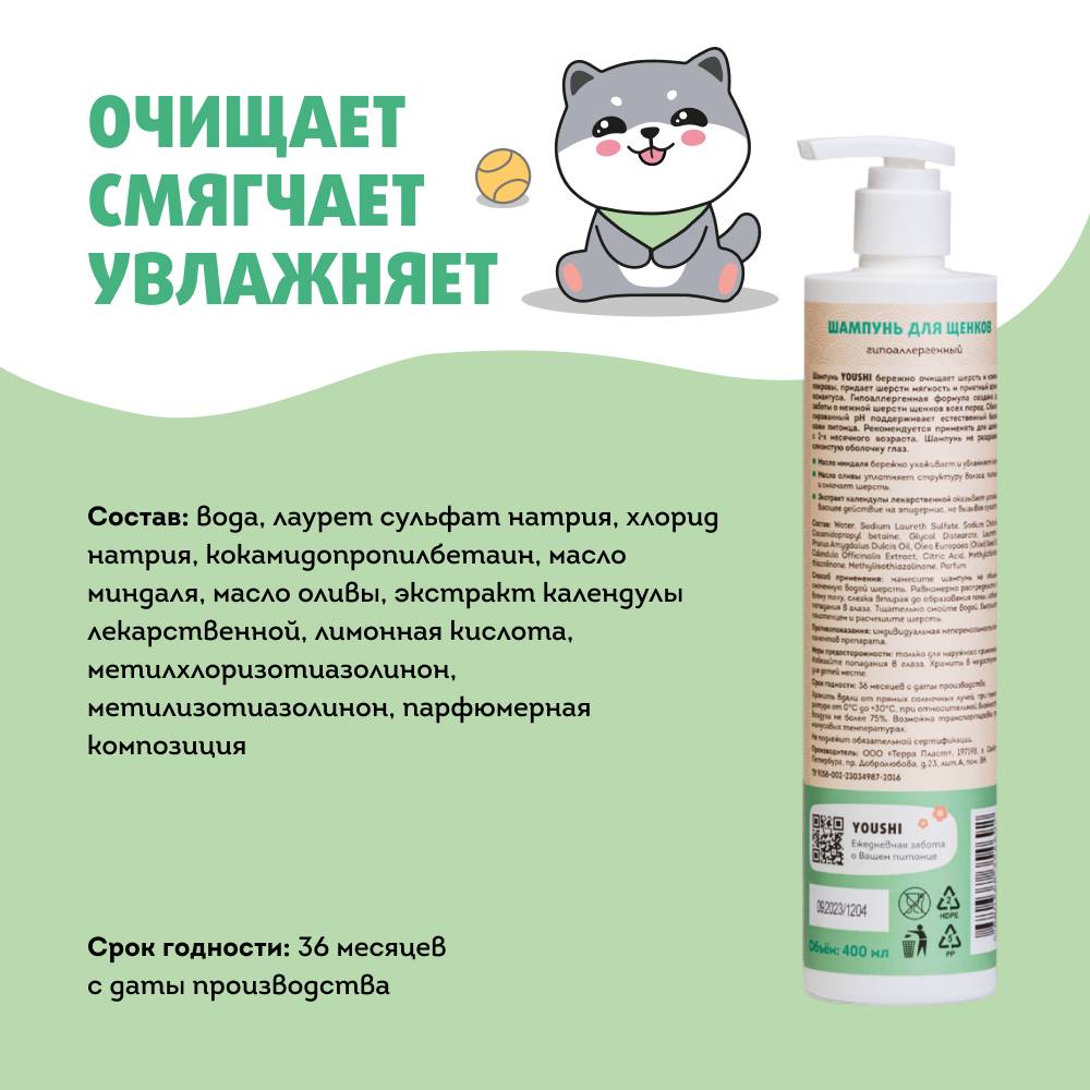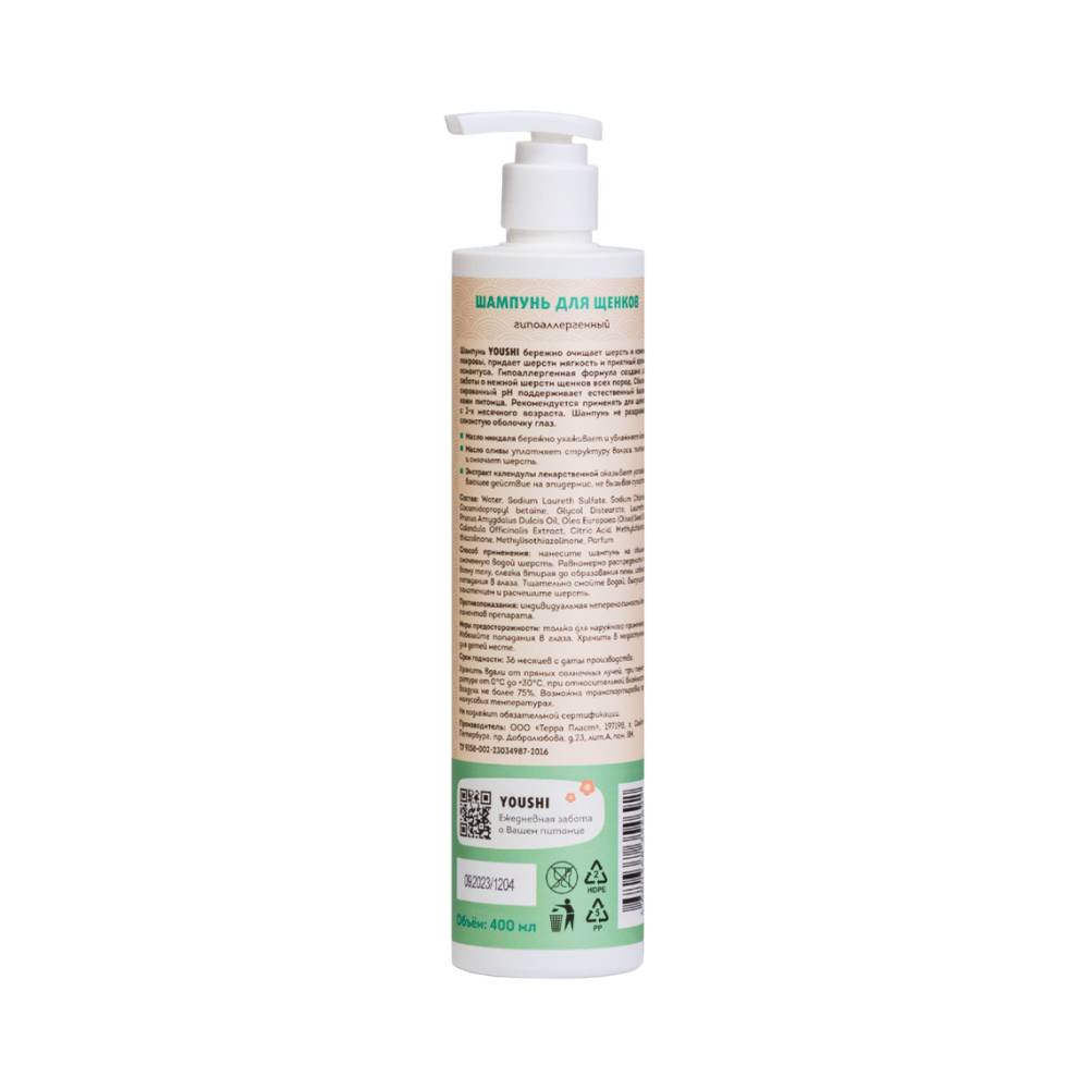 Шампунь от бренда Youshi для щенков с приятным ароматом османтуса бережно очищает шерсть и кожные покровы, придает шерсти мягкость. Рекомендуется применять для щенков с 2-х месячного возраста.