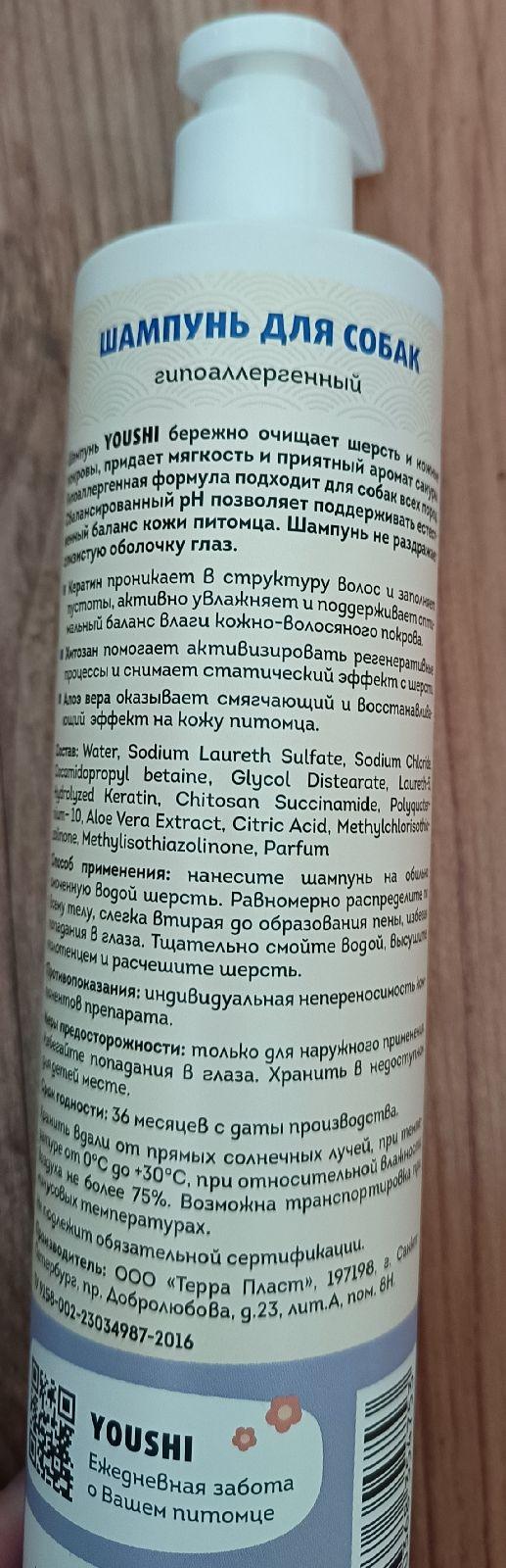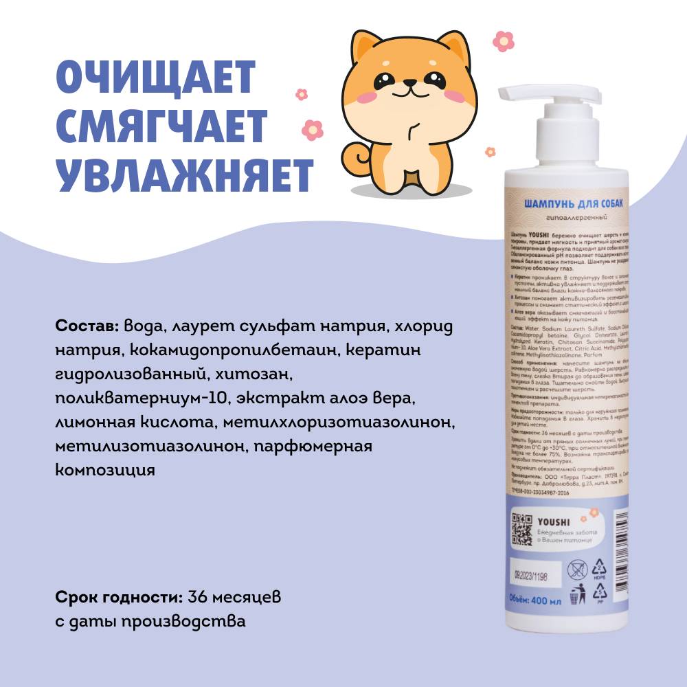 Шампунь от бренда Youshi для собак с нежным ароматом сакуры бережно очищает шерсть и кожные покровы, придает мягкость.