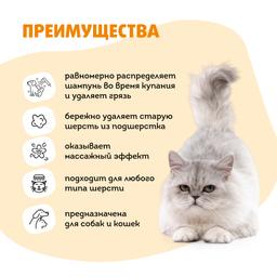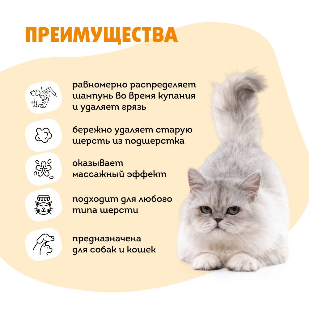 - Равномерно распределяет шампунь во время купания и удаляет грязь.