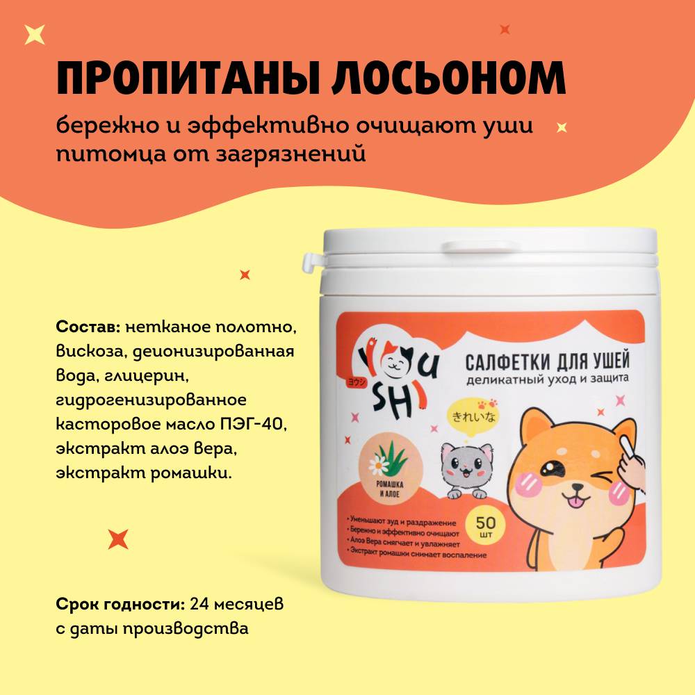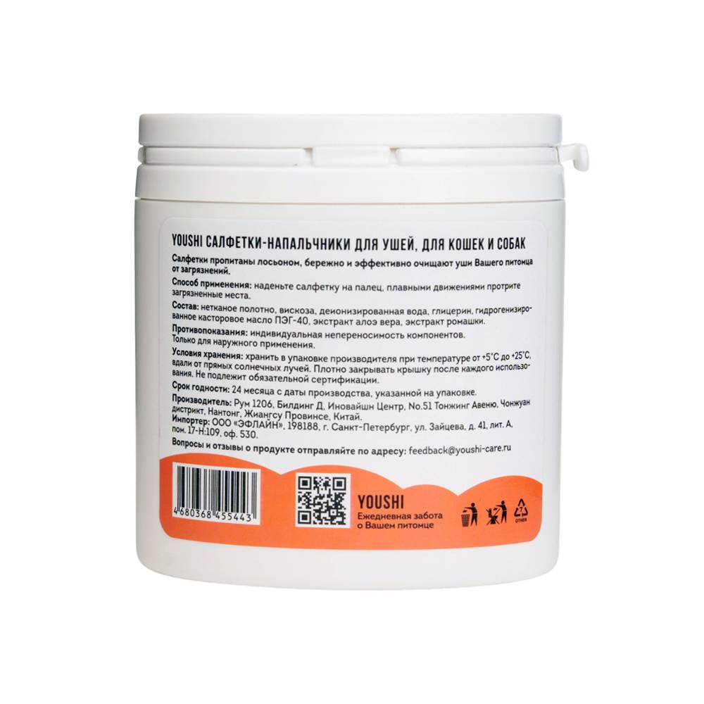 Youshi Салфетки-напальчники Youshi пропитаны лосьоном, с их помощью вы бережно и эффективно очистите уши питомца от загрязнений.
