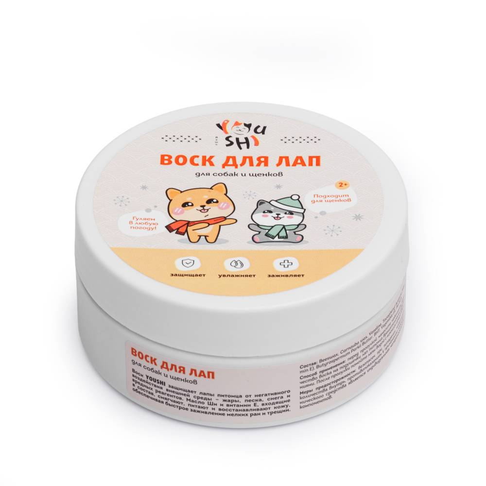 Воск от бренда Youshi защищает лапы питомца от негативного воздействия внешней среды – жары, песка, снега и вредных реагентов.