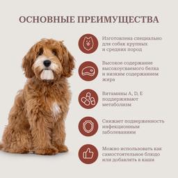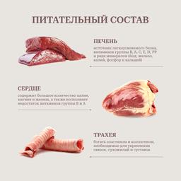 • Трахея помимо высококачественного белка богата также эластином и коллагеном, которые необходимы для укрепления связок, сухожилий и суставов, что особенно важно для собак средних и крупных пород.