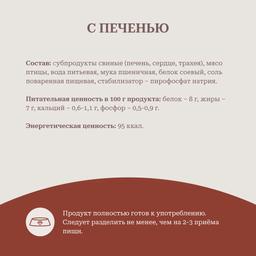 cубпродукты свиные (печень, сердце, трахея), мясо птицы, вода питьевая, мука пшеничная, белок соевый, соль поваренная пищевая, стабилизатор – пирофосфат натрия.