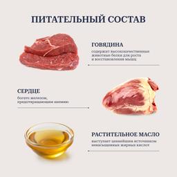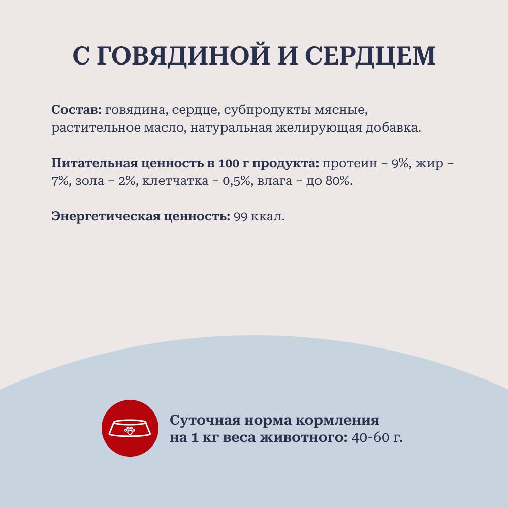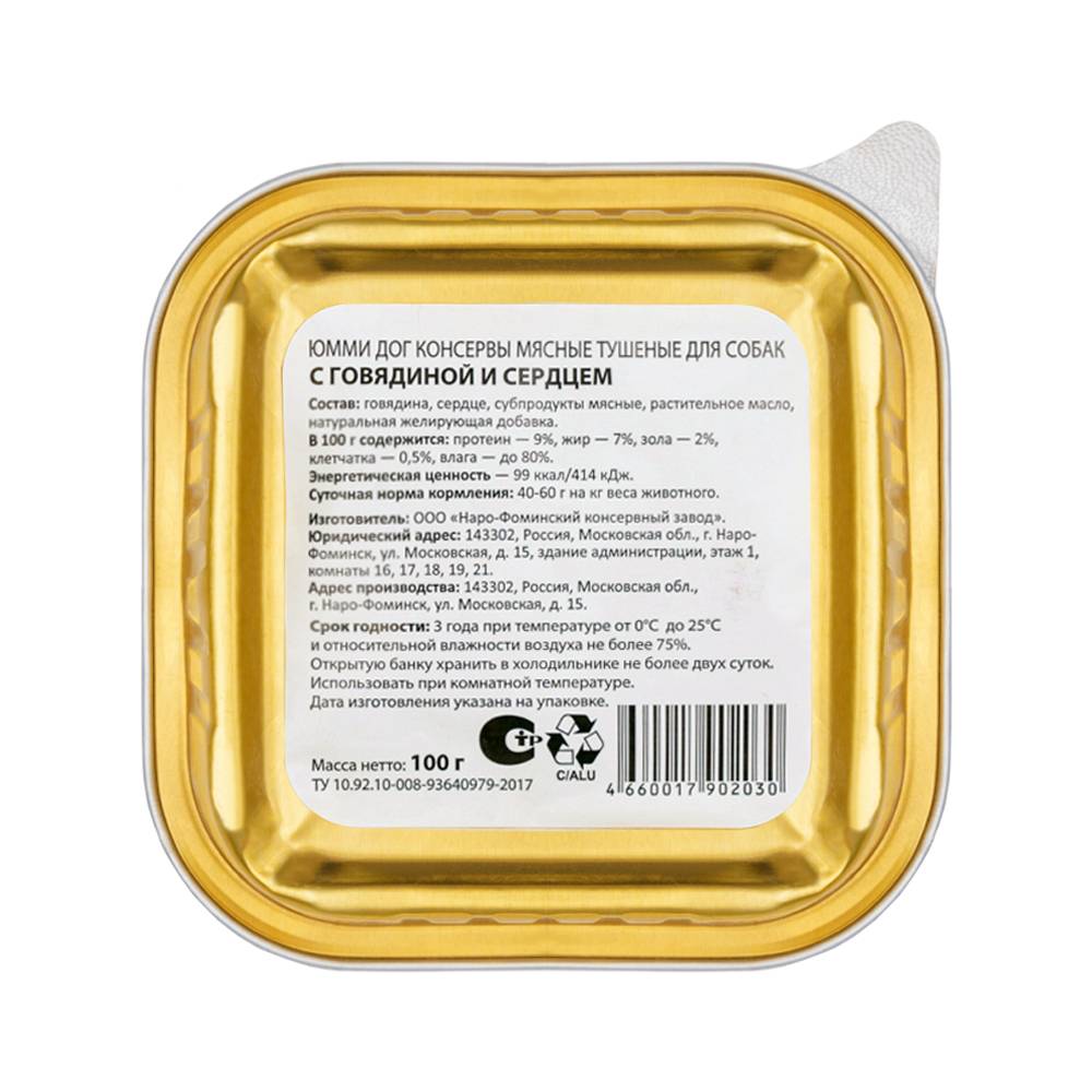 Консервированный корм «YUMMY» для собак «Говядина с сердцем» изготовлен по классической рецептуре. Помимо основного ингредиента – мяса, корм содержит мясопродукты и субпродукты, обогащающие его питательными веществами и витаминами, и придающие корму аппетитный для питомца вкус и аромат.