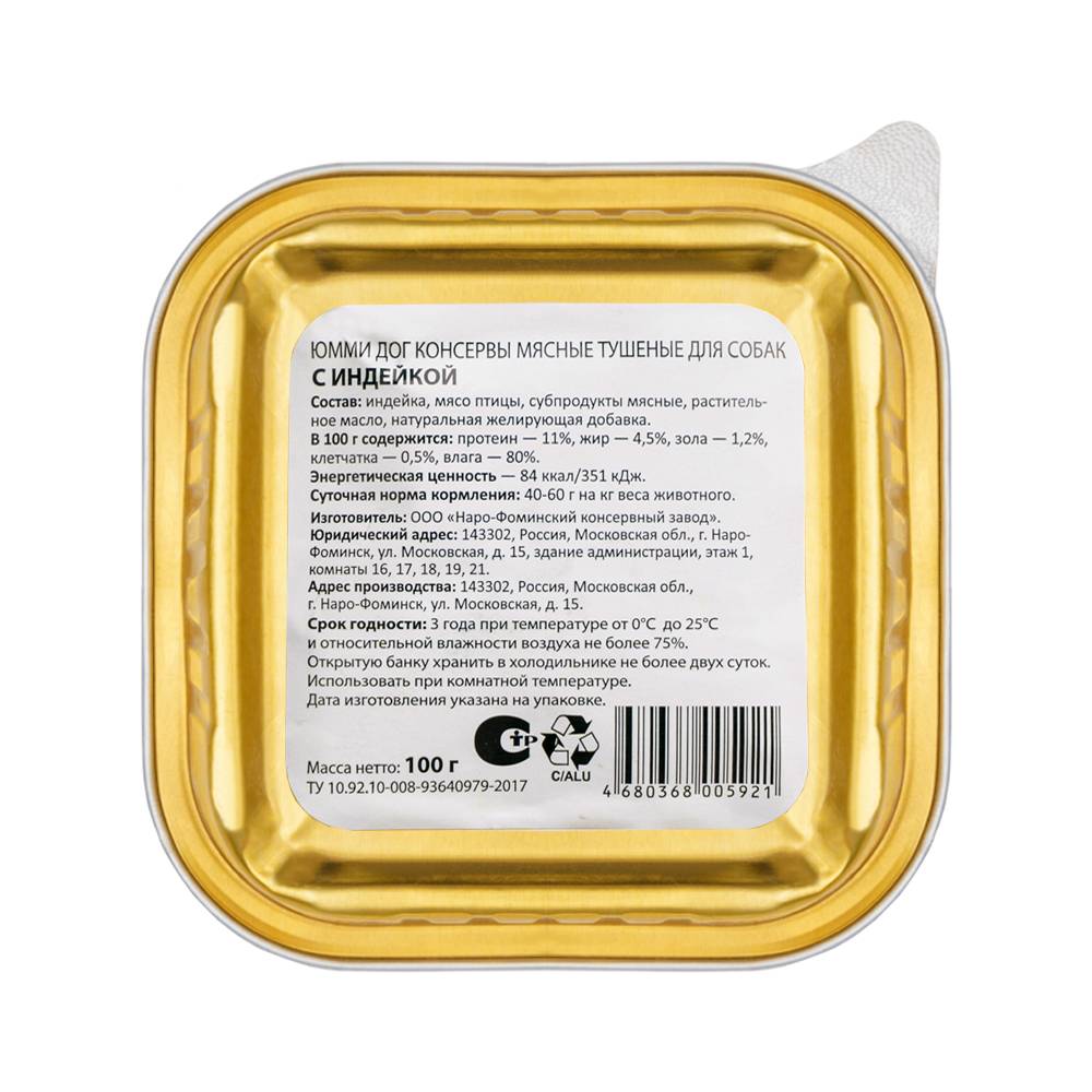 Консервированный корм «YUMMY» для собак «Индейка» изготовлен по классической рецептуре. Помимо основного ингредиента – мяса, корм содержит мясопродукты и субпродукты, обогащающие его питательными веществами и витаминами, и придающие корму аппетитный для питомца вкус и аромат.