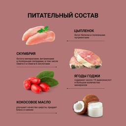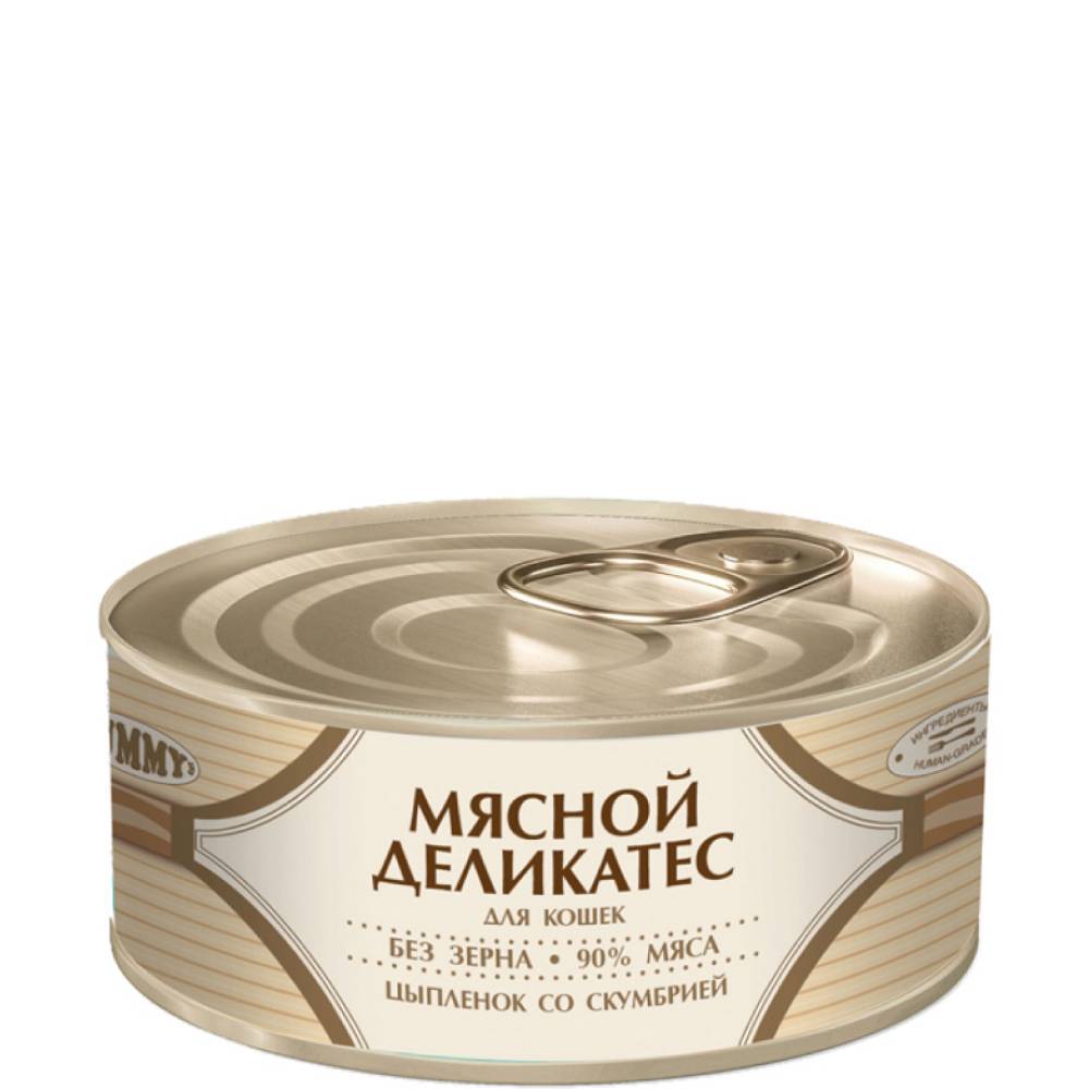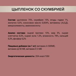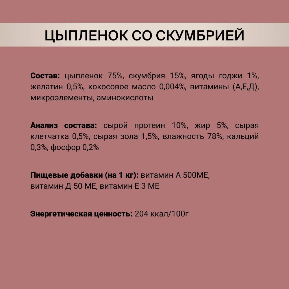 Мясной деликатес для взрослых кошек Цыпленок со скумбрией создан специально для животных, чувствительных к синтетическим добавкам.