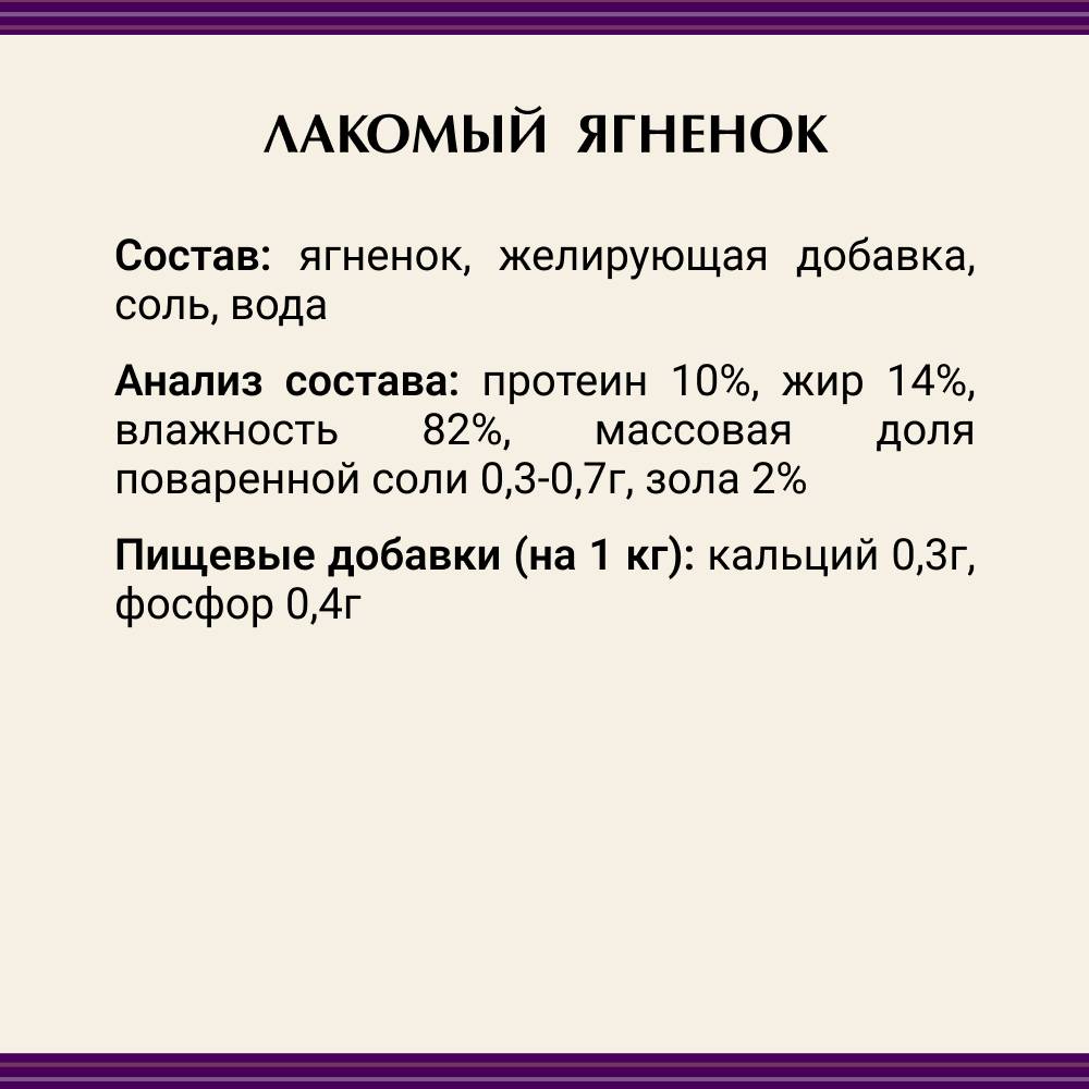 Мясной деликатес для щенков "Ягненок натуральный" в желе создан специально для животных, чувствительных к синтетическим добавкам.
