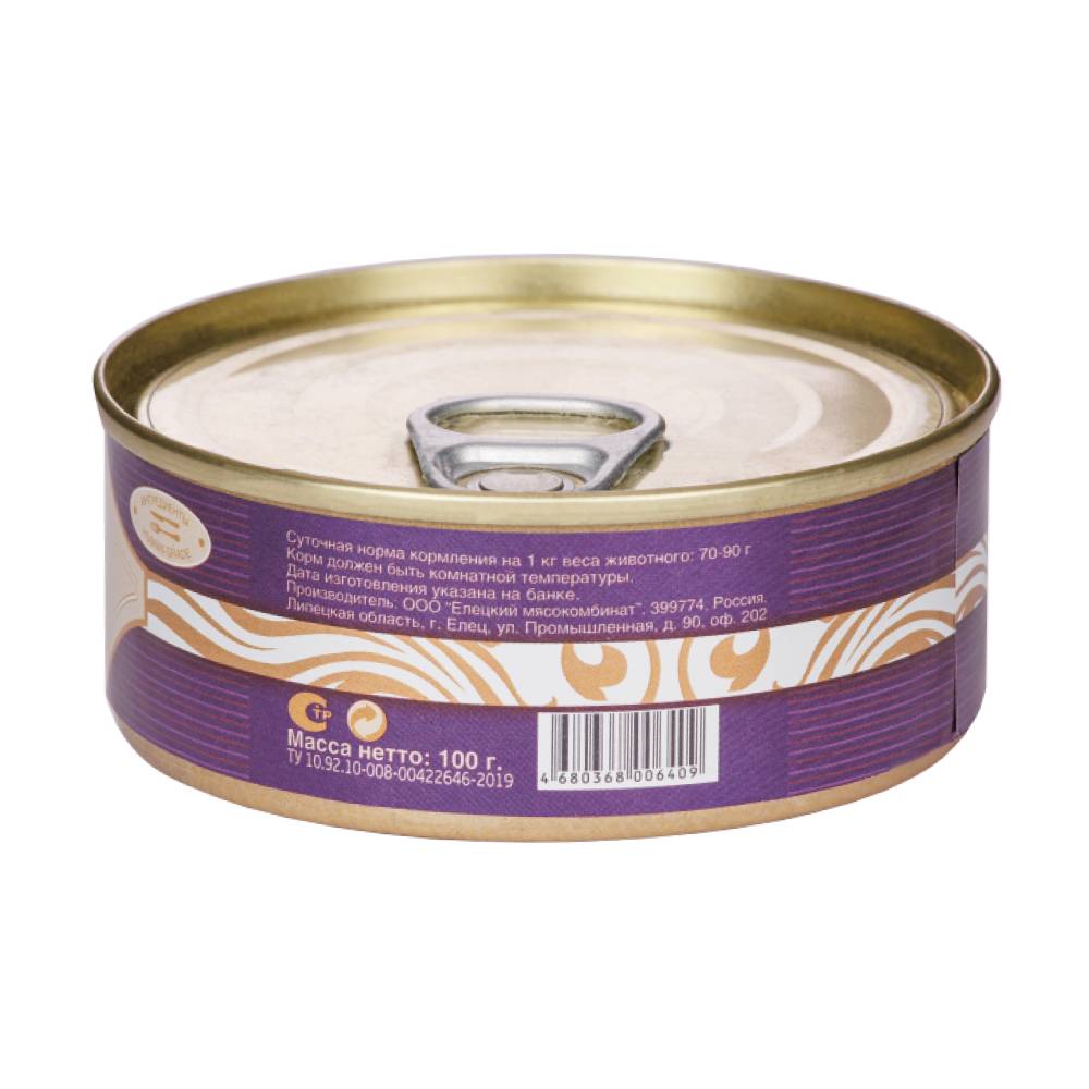- «Мясной деликатес» удобно брать в дорогу, на дачу. Консервированный корм оборудован открывающейся крышкой, не требующей применения консервного ножа.