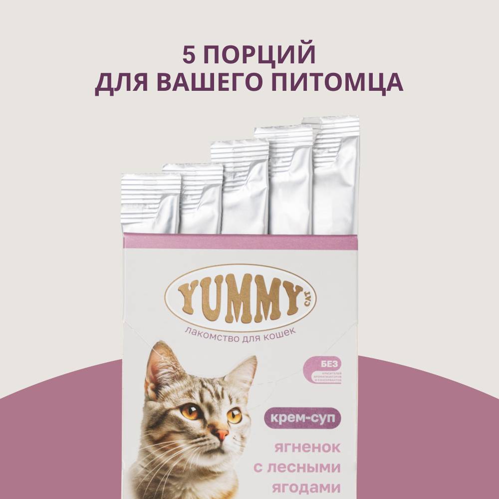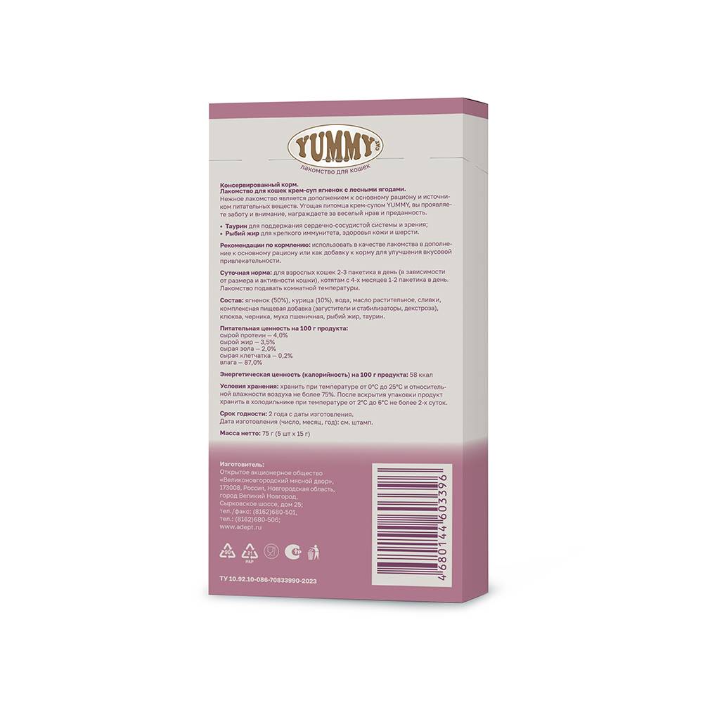 Yummy Лакомство Крем-суп из ягненка с лесными ягодами для кошек, 5х15 гр.