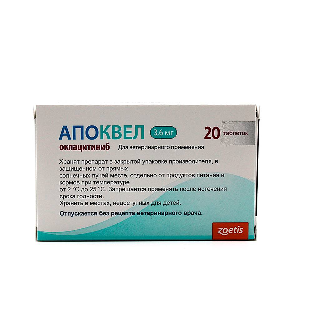 Апоквел в таблетках для собак для контроля симптомов зуда и воспаления кожи при дерматите, ассоциированном с аллергией (контактной, пищевой, паразитарной), а также для лечения и профилактики рецидивов атопического дерматита.