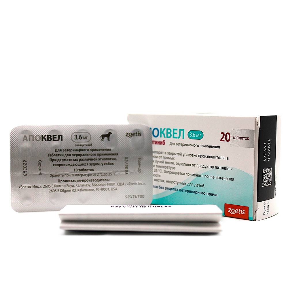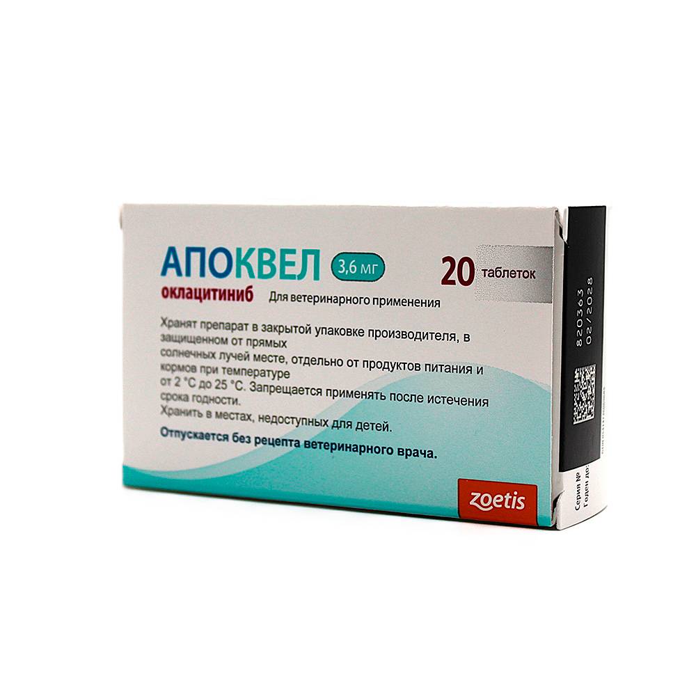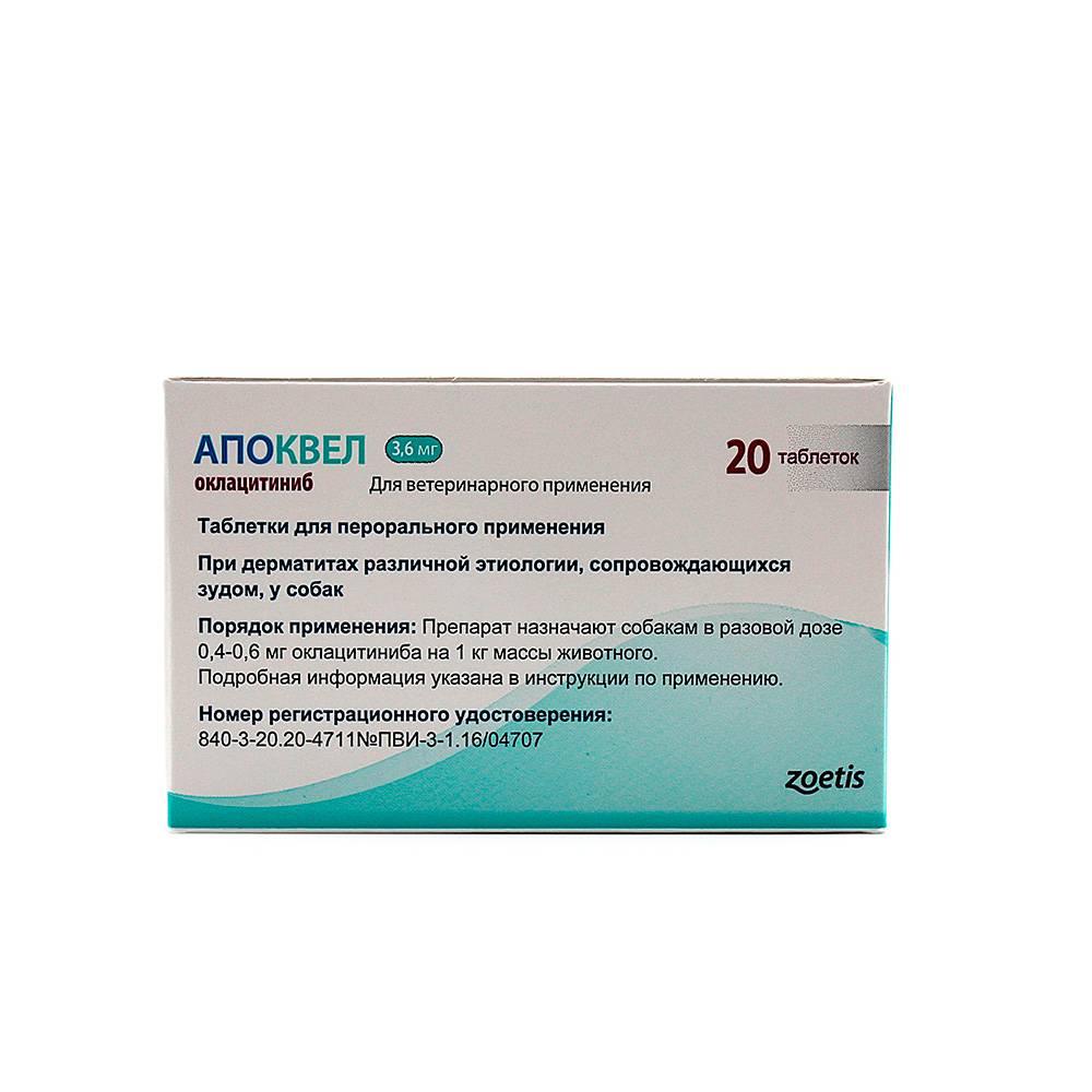 Апоквел в таблетках для собак для контроля симптомов зуда и воспаления кожи при дерматите, ассоциированном с аллергией (контактной, пищевой, паразитарной), а также для лечения и профилактики рецидивов атопического дерматита.