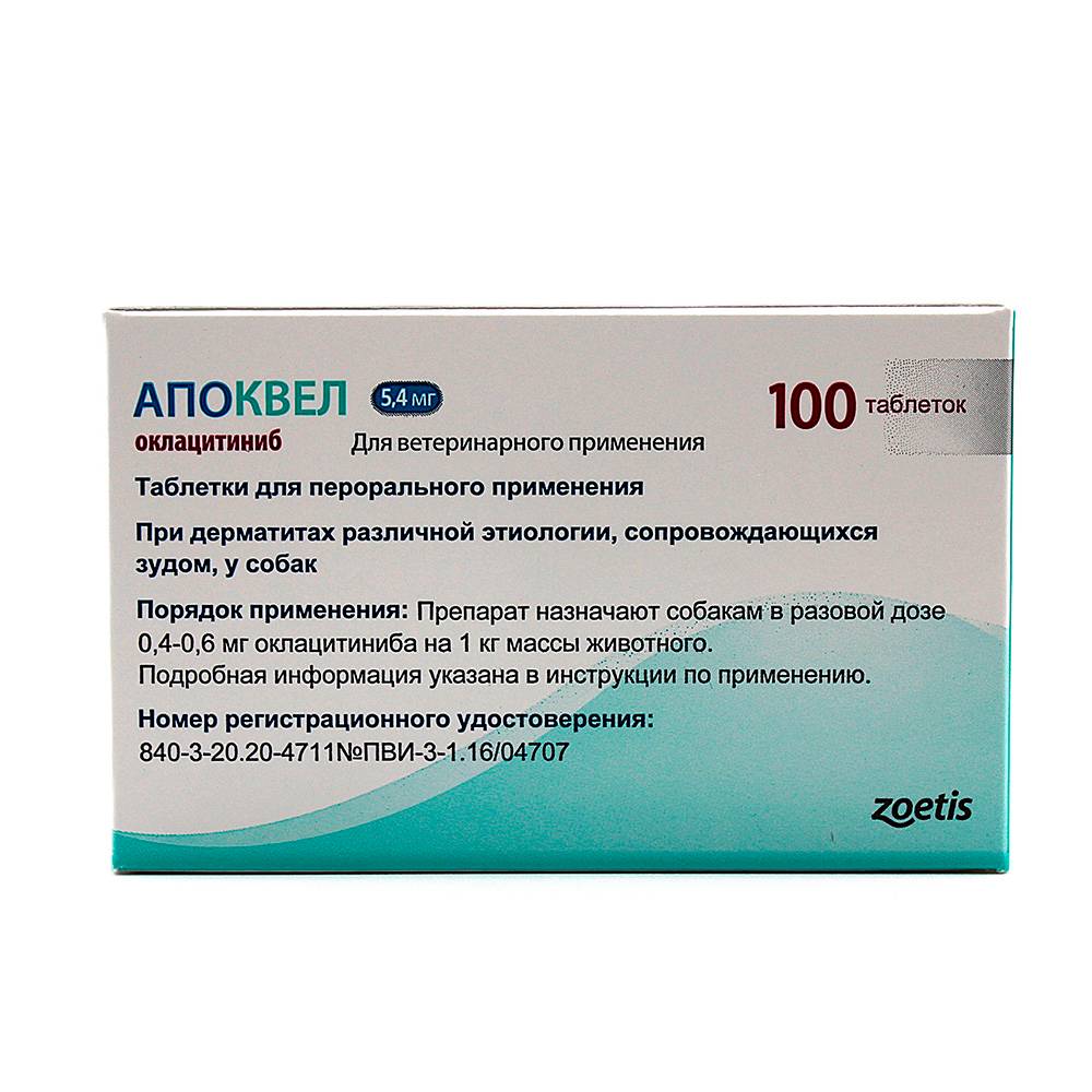 Zoetis Апоквел Таблетки для снятия зуда у собак 5,4 мг, 100 таблеток