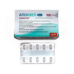 Апоквел в таблетках для собак для контроля симптомов зуда и воспаления кожи при дерматите, ассоциированном с аллергией (контактной, пищевой, паразитарной), а также для лечения и профилактики рецидивов атопического дерматита.