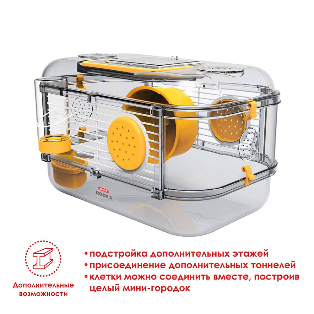 - Клетка Rody "Mini" обладает дополнительными возможностями: подстройка дополнительных этажей, присоединение дополнительных тоннелей.