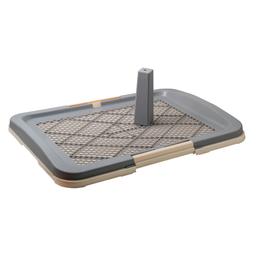 Туалет предназначен для собак и щенков. Съёмный столбик (18 см) легко крепится на решетку и позволяет применять туалет независимо от пола собаки. Гигиеническая пелёнка помещается под решетку, удерживаемую боковыми фиксаторами. Решетка защищает пелёнку от погрызов. Туалет легко моется водой.