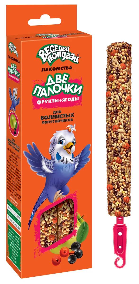 Лакомства ВЕСЕЛЫЙ ПОПУГАЙ «ДВЕ ПАЛОЧКИ» – это не только вкусная игрушка для пернатого друга, но и полезная работа для клюва.