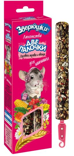 Потрясающие лакомства для шиншилл с луговыми травами и овощами. «ДВЕ ПАЛОЧКИ» упакованы в дополнительную упаковку, которая дольше и надежнее сохраняет лакомства и защищает их от проникновения всяких вредителей. Кроме того, они имеют удобное крепление, которое позволяет легко, быстро и надежно закрепить палочку на прутьях клетки. На них гораздо больше вкусностей благодаря тонкой деревянной палочке.