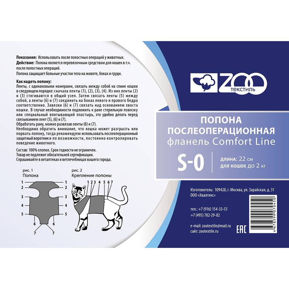 Comfort Line Попона послеоперационная для кошек №S-0 |