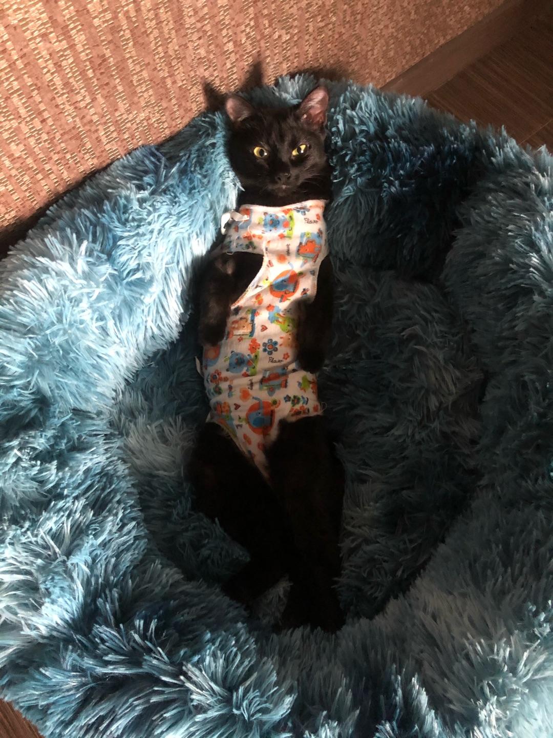 Попона является перевязочным средством для кошек и собак, в том числе после полостных операций. Попона защищает больные участки тела на животе, боках и груди.