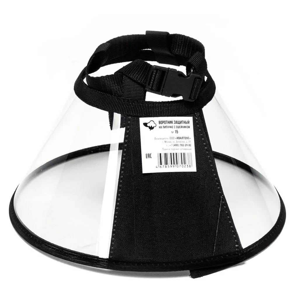 Воротник оснащен собственным ошейником с пластиковым замком (фастекс) и металлическим кольцом для фиксации поводка (при желании его можно снять).