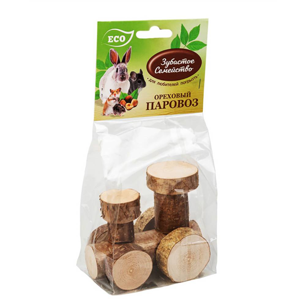 Зубастое семейство Игрушка из орешника для грызунов Ореховый паровоз, 6,5x10x9 см