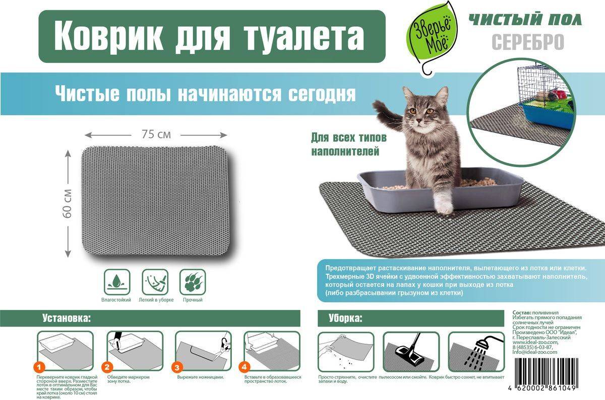 • Предотвращают растаскивание наполнителя, вылетающего из лотка или клетки.