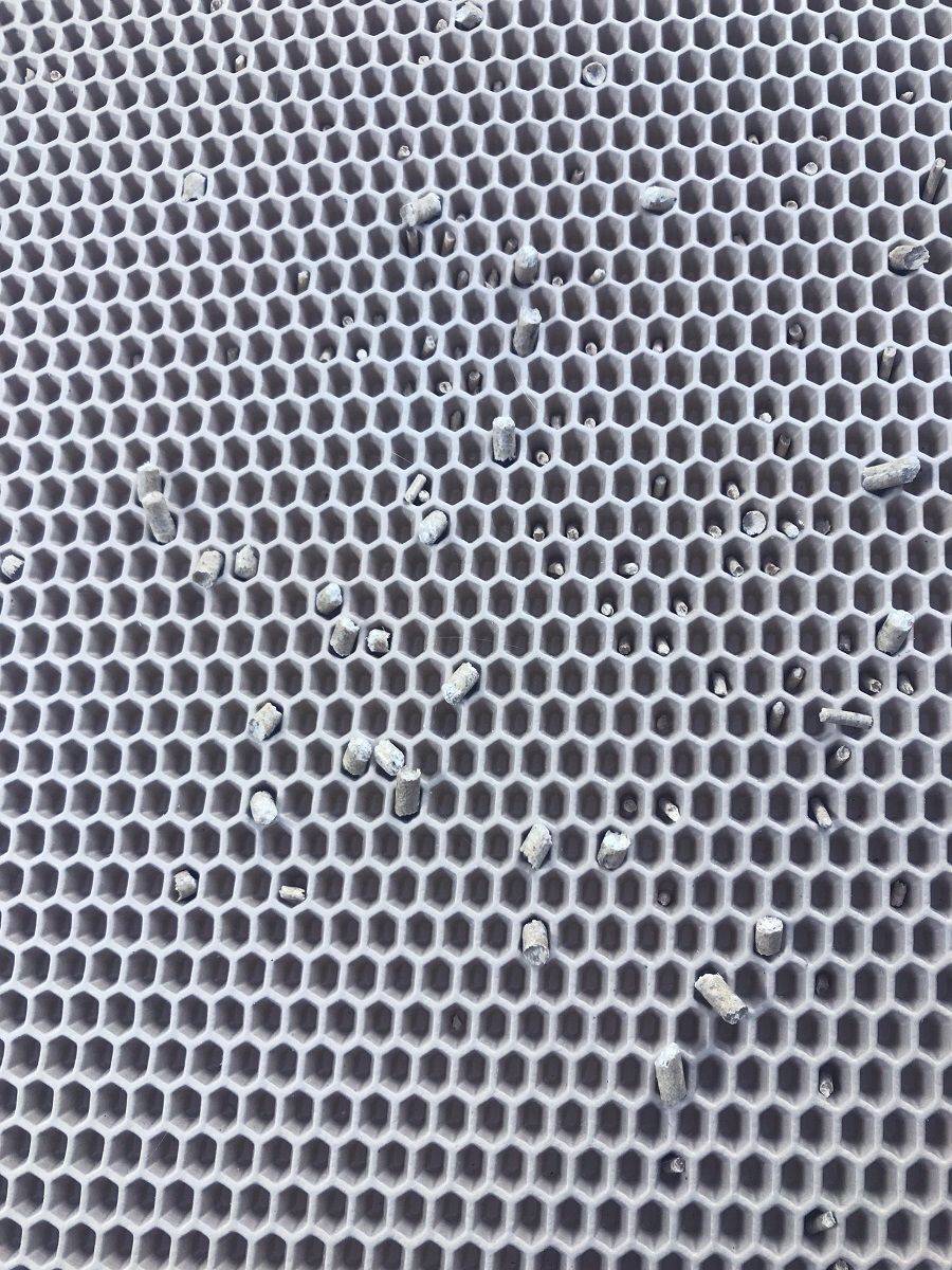 • Трехмерные выпуклые 3D ячейки диаметром 12 мм с удвоенной эффективностью захватывают наполнитель, который остается на лапах у кошки при выходе из лотка (либо разбрасывании грызуном из клетки).