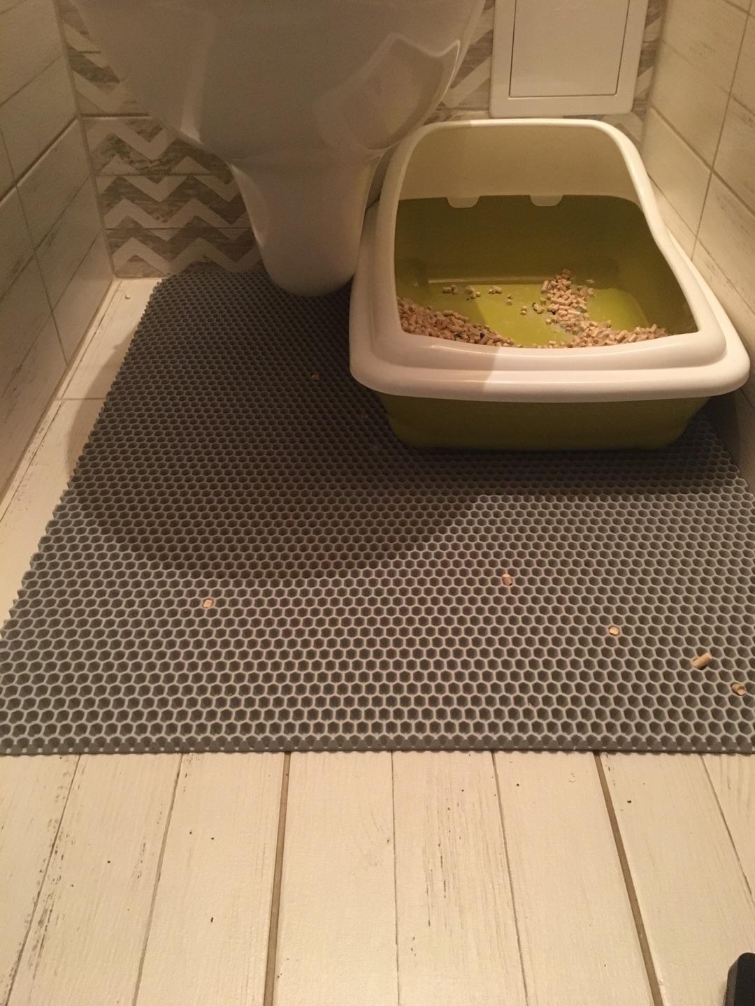 Коврик просто спасение, в ванной комнате и квартире, в целом, больше нет гранул из лотка. То, что цепляется за лапки - остаётся на коврике.